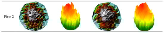 3D reconstruction of the tree canopy is an important means for forest morphology illustration, individual tree segmentation, and biophysical parameter extraction [43]. However, accurate reconstruction of real trees from LiDAR points is a huge challenge [44]. On the one hand, tree crowns are highly complex in geometry and topology. In particular, the overall shape of a single crown varies with different tree species, and the geometric shape of different portions of the same crown are also different. Moreover, a real crown may have a shape of concavity [45]. On the other hand, LiDAR points have no topological connections; these points are unstructured and unevenly distributed, and are sampled from discrete tissue elements [46], thereby difficult to identify surface points and define typical boundary points in a tree crown.