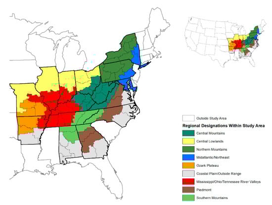 - The Appalachian Region. Available online: https://www.arc.gov/appalachian_region/MapofAppalachia.asp (accessed on 12 November 2019).