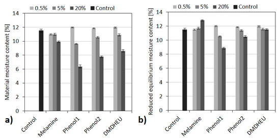 Figure 1a). This was to be expected as the additional weight due to the modification changed the basis on which the MC is calculated. Reduced equilibrium moisture content