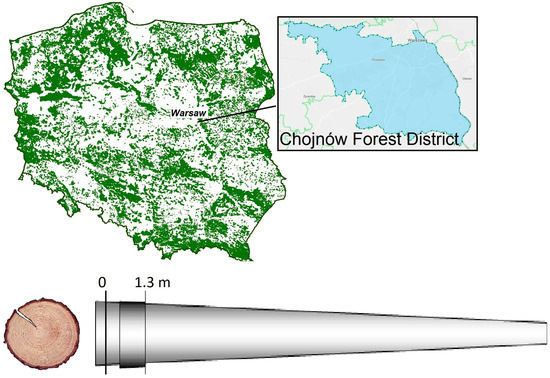 We would like to thank the management staff of Chojnów Forest District for granting consent for conducting the above-presented research. We are grateful especially to the foresters from Bogatki, Sękocin, and Uwieliny for help in the field work, including the designation, cutting, and transport of trees for further research.