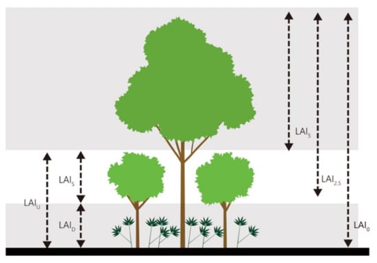 - Nasahara, K.N.; Muraoka, H.; Nagai, S.; Mikami, H. Vertical integration of leaf area index in a Japanese deciduous broad-leaved forest. Agric. For. Meteorol. 2008, 148, 1136–1146. [Google Scholar] [CrossRef]