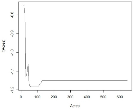 Similarly, landowners’ renting decisions changed with the acres of lands they possessed with distinct observation before 100 acres of lands (Figure 6). Landowners with small landholdings (smaller than 100 acres) were more willing to rent when compared to landowners who had large acres of existing land ownership.