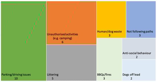 | Problematic behavior by PA users | An increase in problematic behavior when using the PA was observed. This referred to a range of issues including waste management and disturbance e.g., littering and dog/human waste, noise nuisance, illegal/unauthorized activities e.g., camping |