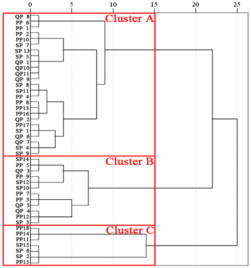 Hierarchical cluster analysis (HCA) was used to analyze the relationship between variations of soundscape and lightscape (See Figure 5). Three clusters were classified by HCA, including clusters A, B, and C. Further, the subjective and objective variations of soundscape and lightscape were respectively fitted, and the results of HCA are combined in Figure 6a,b. From Figure 6a, Δss,c maintained a higher value than Δss,o when the sound pressure difference was from 0.5 to 3.5 dBA. When ΔLAeq,5min was 1.24 dBA, there was a maximum gap between Δss,c and Δss,o near the boundary of cluster B and C. From Figure 6b, there was a positive correlation with the decline in growth between ΔUI and Δsl. Based on our hypothesis, these findings suggested that the gap between Δss,c and Δss,o (Δss,c − Δss,o) may be related to the value of Δsl.