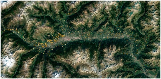 Map of the surveyed area in the Aosta Valley (north-western Italian Alps), showing the georeferenced pheromone baited traps placed in 2015–2019).