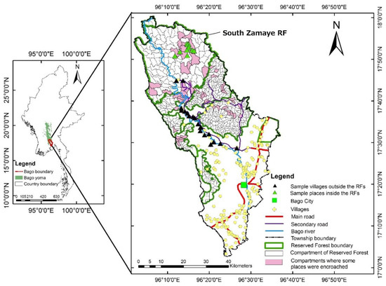 - Forest Department. Forest Law in Myanmar; The State Law and Order Restoration Council: Burma, Myanmar, 1992. [Google Scholar]