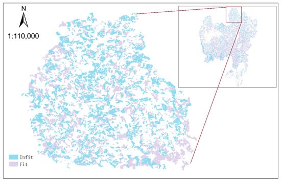 Suitable areas for multifunctional management. In the figure, the “unfit” indicates that this type of forest area is not suitable for multifunctional forest management, and the “fit“ means that the regional forest stand is suitable for multifunctional forest management.
