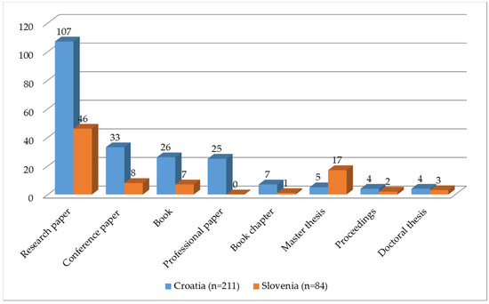 Distribution of publications in Croatia and Slovenia per type of publication.