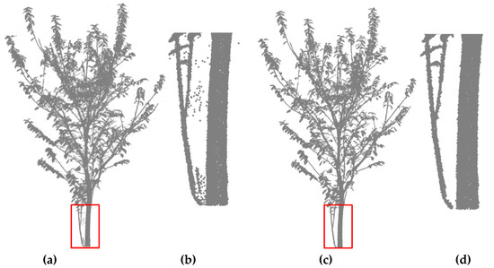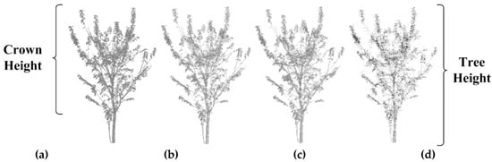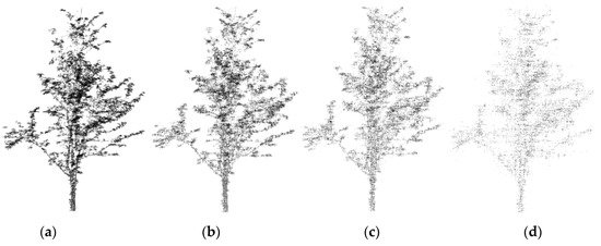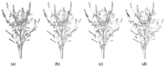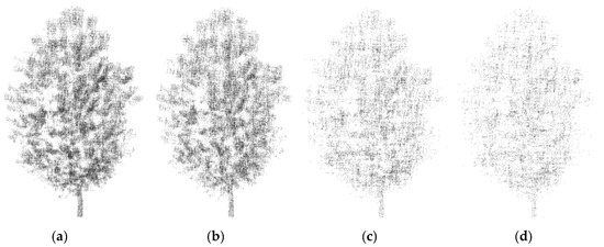 In this set of experiments, point clouds (a)–(e) are used to verify the performance of the proposed scheme on point clouds from a single tree.