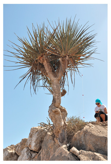 - Maděra, P.; Volařík, D.; Patočka, Z.; Kalivodová, H.; Divín, J.; Rejžek, M.; Vybíral, J.; Lvončík, S.; Jeník, D.; Hanáček, P.; et al. Sustainable land use management needed to conserve the dragon’s blood tree of Socotra Island, a vulnerable endemic umbrella species. Sustainability 2019, 11, 3557. [Google Scholar] [CrossRef]