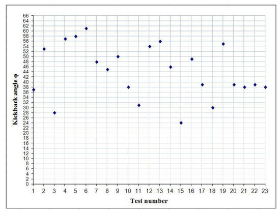 The maximum calculated final uncertainty of the kickback angle was ±2°. For this purpose, 30 parameters (input quantities) whose component uncertainties could affect this value were considered.