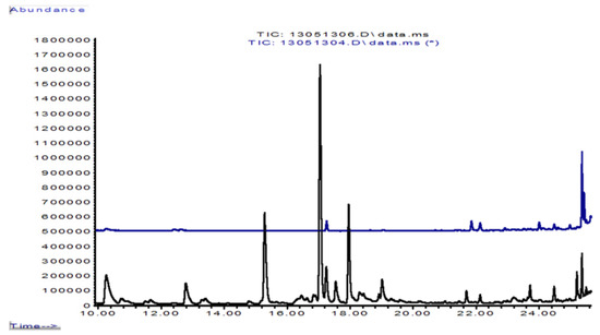 The potential response of Foma 4 colonies to volatile emanations was ascertained with their exposure to 6 g of a non-sterile beech wood dust/soil mix (Figure 6). The fungus removed monoterpenes, oxygenated compounds and most of the sesquiterpenes from the headspace air.