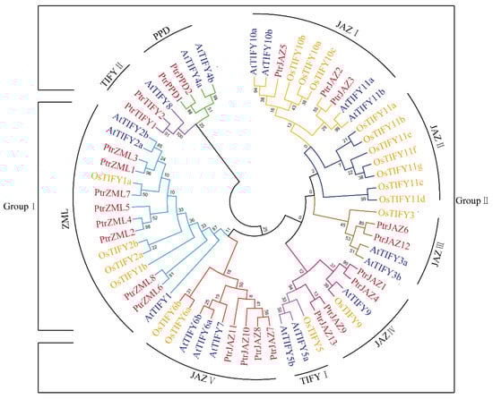 2.1. Identification of TIFY Genes in P. trichocarpa