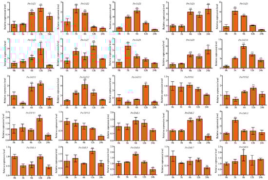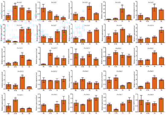3.5. Expression Pattern of PtrTIFY Genes under Drought, Heat, Cold Stress