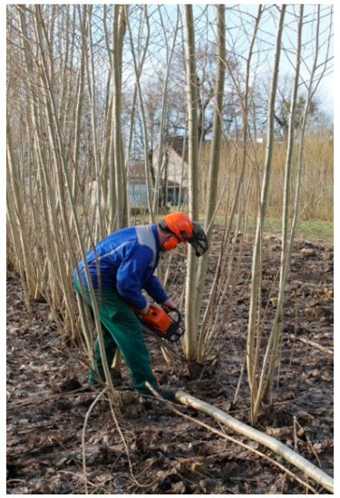 - Scholz, V.; Boelke, B.; Burger, F.; Hofmann, M.; Hohm, C.; Lorbacher, F.R. Produktion von Pappeln und Weiden auf Landwirtschaftlichen Flächen (Growing Poplar and Willow on Agricultural Land); Kuratorium für Technik und Bauwesen in der Landwirtschaft: Darmstadt, Germany, 2008; Volume 79, p. 40. [Google Scholar]