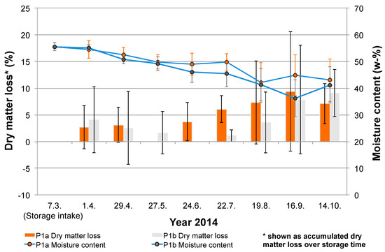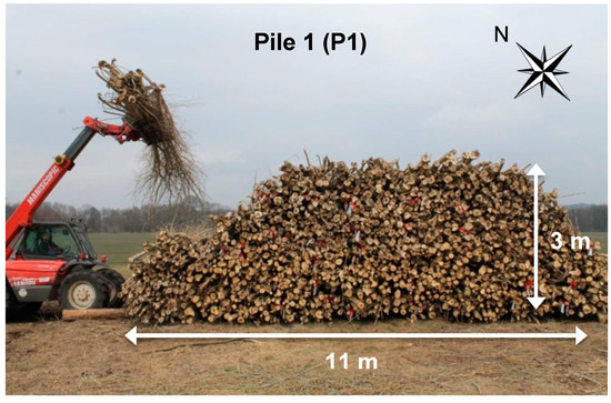 - Pecenka, R.; Lenz, H.; Idler, C. Influence of the chip format on the development of mass loss, moisture content and chemical composition of poplar chips during storage and drying in open-air piles. Biomass Bioenergy 2018, 116, 140–150. [Google Scholar] [CrossRef]