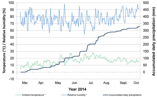 | Weather conditions Outdoor temperature Relative atmospheric humidity Precipitation | °C % mm | Daily averages Daily averages Daily sum | German Weather Service Potsdam (52.23° N; 13.03° E) for trial P1 respectively Gera Leumnitz (50.52° N; 12.07° E) for trial P2–4 | |