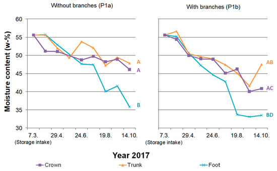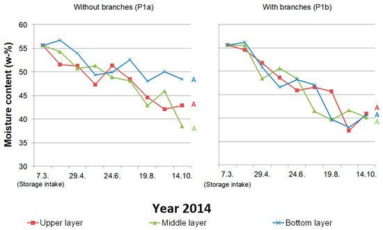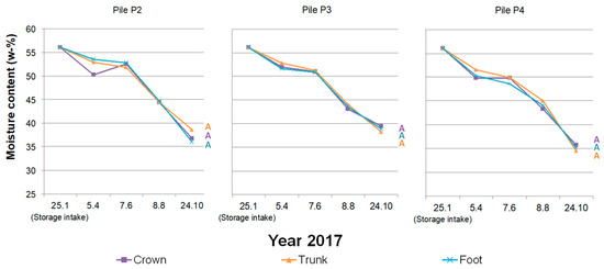 3.5. Drying Behaviour as a Function of Pile Layer and Tree Section