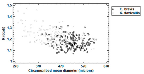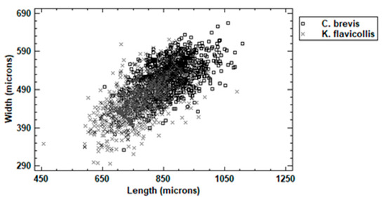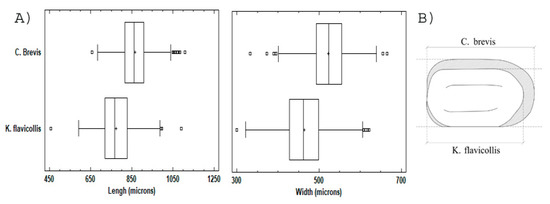 | Dimensional Variable | C. brevis | K. flavicolis | |
