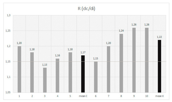 | Sample | Sp. | l (µm) | CV (%) | SE (%) | a (µm) | CV (%) | SE (%) | dc (µm) | CV (%) | SE (%) | di (µm) | CV (%) | SE (%) | R (dc/di) | CV (%) | SE (%) |