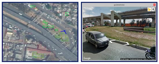 Training sites for bare soil (green squares on the left) located at I. Zaragoza Avenue in the Iztapalapa borough of Mexico City.
