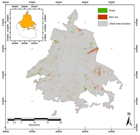 Potential planting sites (bare soil) in Mexico City’s urban land.