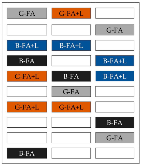 | B-FA+L | 10 ± 3b | 1 ± 0a | 0.49 ± 0.06a | 6.45 ± 0.33a | 7.79 ± 0.07a | 35.66 ± 8.41a | 1.83 ± 0.65a | 1.86 ± 0.25a | 0.03 ± 0.01a | 0.07 ± 0.01a | 0.01 ± 0.00a | 0.10±0.03a | 0.04 ± 0.01a | 3.66 ± 1.14a | 5.18 ± 0.15a | 0.34 ± 0.08a | 0.28 ± 0.01a |