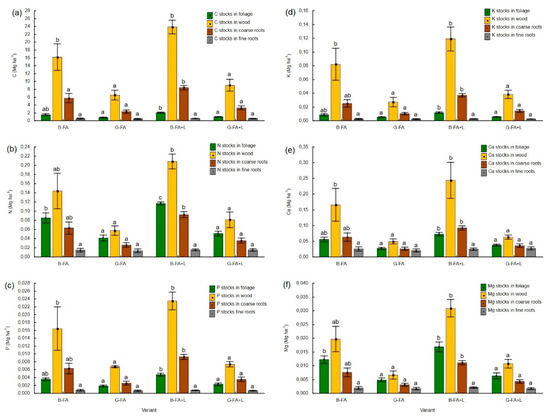 3.4. Carbon and Macronutrient Stocks in Biomass