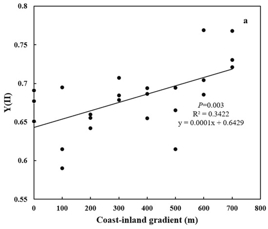 Variations in Y(II) for P. thunbergii along the coast-inland gradient.