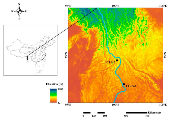 Map of elevation in the Lancangjiang River Basin, Southwest China. (Data of elevation from Geospatial Data Cloud).