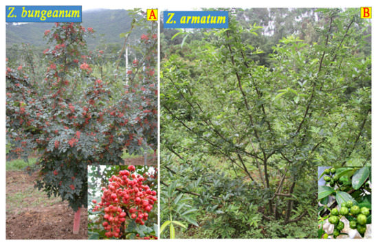 Chinese pepper has been demonstrated to possess a wide range of definite anti-tumor and pharmacological effects on, i.e., digestive system and nervous system. These salubrious effects appear to be most likely due to analgesic, stress-reducing, anti-inflammatory, and antioxidant effects [9,10]. In addition, these two species have ecological values and are planted as mountainous afforestation trees because of their ability to conserve soil and water [11]. Therefore, both Z. bungeanum and Z. armatum are excellent tree species for cultivation with economical, medicinal, and ecological values.