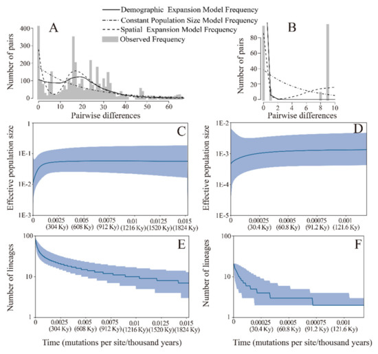 - Rozas, J.; Ferrermata, A.; Sanchezdelbarrio, J.C.; Guiraorico, S.; Librado, P.; Ramosonsins, S.E.; Sanchezgracia, A. DnaSP 6: DNA Sequence Polymorphism Analysis of Large Data Sets. Mol. Biol. Evol. 2017, 34, 3299–3302. [Google Scholar] [CrossRef]
