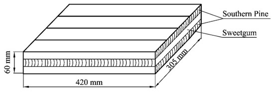 The Southern pine (Pinus taeda) and sweetgum (Liquidambar styraciflua) are two of most common wood species in the south of the United States. The southern pine has been widely used in engineered wood timber and composites. Sweetgum is moderately heavy and hard, and often has a form of cross grain called interlocked grain that makes the wood deform and crack easily if not dried slowly. Sweetgum is mainly for veneer, plywood, slack cooperage, fuel, pulpwood, boxes, and crates [1]. Table 1 summarizes the basic physical and mechanical properties of southern pine and sweetgum at 12% moisture content (MC) [1], including specific gravity (SG), modulus of rupture (MOR), modulus of elasticity (MOE), compression strengths, and tension strength perpendicular to grain.