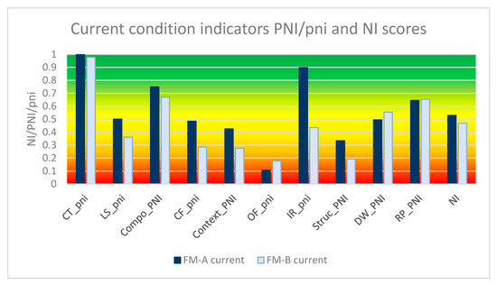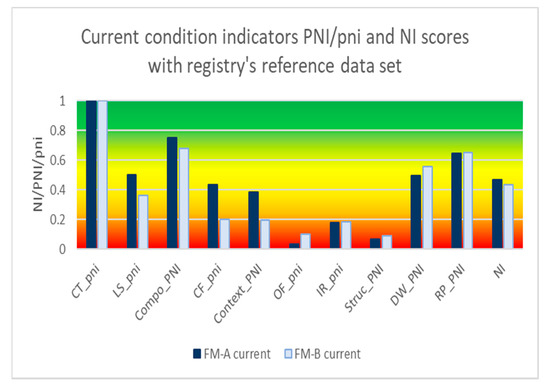 Results for condition indicators and naturalness index (NI) for FM-A and FM-B using registry’s reference state data set [21].