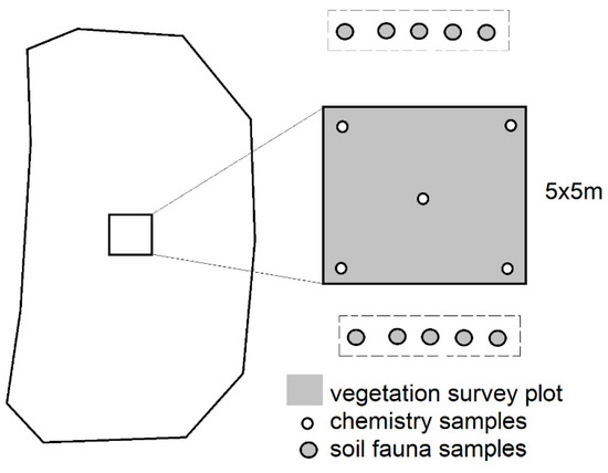 In this study, we used a chronosequence approach to evaluate ecosystem changes during succession. A chronosequence approach is commonly used to study long-term ecosystem processes, and it is based on a comparison of sites of various ages following a similar trajectory of development. Chronosequence studies of postmining sites are very common in botany, and vast numbers of studies exist about changes of plant communities during succession in these sites, including the area that we studied [14,15,16]. However, other parts of the ecosystem, such as soil development or soil fauna, are studied less often. Here, we used a chronosequence approach to study changes in soil chemistry, soil fauna, and a major component of vegetation responsible for input of organic matter to the soil during ecosystem development. This was done on two parallel chronosequences with different site topographies.