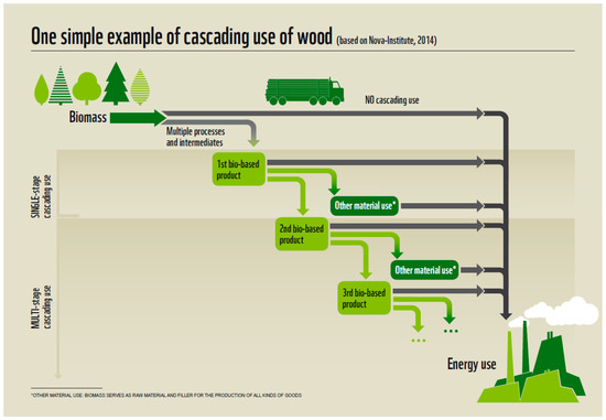 - Essel, R.; Breitmayer, E.; Carus, M.; Fehrenbach, H.; von Geibler, J.; Bienge, K.; Baur, F. Discussion Paper: Defining Cascading Use of Biomass; Nova Institute: Hürth, Germany, 14 March 2014; Available online: https://biomassekaskaden.de/wp-content/uploads/2014/04/14-03-14_Cascading_use_Discussionpaper.pdf (accessed on 3 July 2019).
