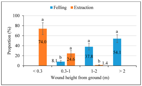| Felling | 261.7 ± 35.3 a | 45.9 ± 22.5 b | 95.13 ± 21.80 a |