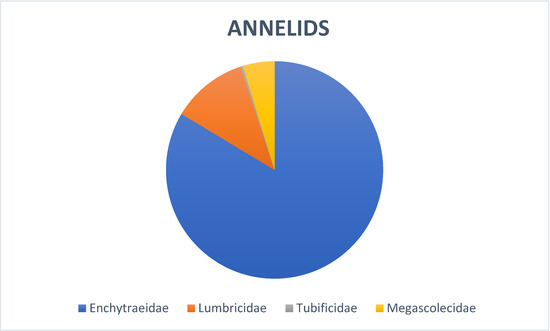 Soil invertebrates are the most abundant and differentiated animal group. They occupy many niches and their populations, phenology, behavior, dispersal, and genetics are highly sensitive to climate change [2]. Soil invertebrates ensure numerous important functions that benefit the ecosystems to which they belong. They are essential to the detritus food chain [3] and on the whole, the soil food web, and contribute to important ecological functions, such as organic matter decomposition, nutrient recycling, and water retention [4,5,6,7].
