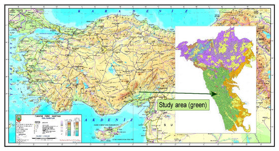 - General Directorate of Forestry. Ecosystem Based Functional Forest Management Plan of the Akoren Sub-District; General Directorate of Forestry: Ankara, Turkey, 2014.