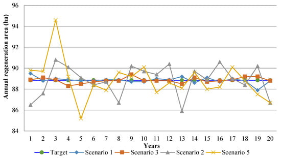 | Year | Scenario 3 of the Regeneration Model | Silviculture Plan | ||||||