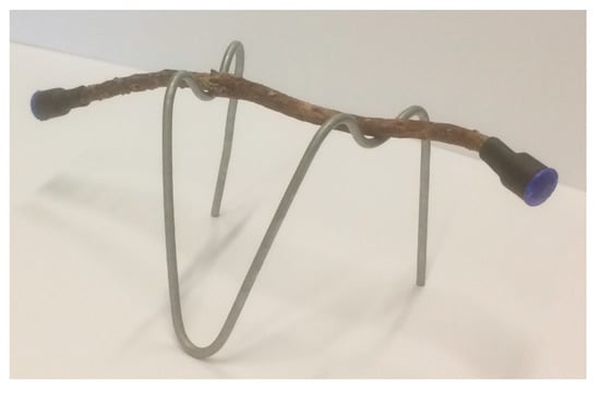 The test specimen diameter was recorded with a caliper at 10 different locations, and it was rotated to get a proper average reading. Test specimens of 3–7 mm diameter were cut to about 200 mm length, placed on a stainless steel grid and gently sprayed with deionized water for 48 h (rate 1 mm/h) prior to the drying tests. After wetting, each test specimen was then cut to 110–160 mm length. They were then equipped with short (3–4 mm) plastic lids to prevent axial drying, as seen in Figure 1.