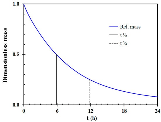 The time needed to achieve a certain level of average dryness, i.e., a relative mass loss as shown in Figure A3b, may then be calculated from Equation (A11) by: