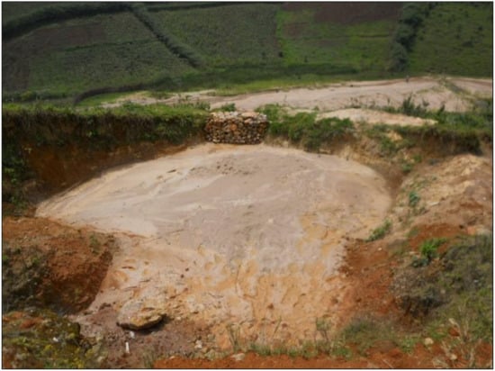All types of mineral extraction through either ASM or large-scale mining, involve influencing of geomorphological and geological structures that directly or indirectly affect geomorphological processes. According to Jones [], we can divide this anthropogenic influence into three categories: human-made relief, human-induced relief, and human-modified relief. Although Jones [] divided the anthropogenic influence of relief into several categories, he also did not precisely define geomorphological processes closely associated with ASM and occurring only in this issue. One of the few studies that strives to define individual characteristics is the study by Byizigiro et al. [], who hypothetically describes the geomorphological processes characterizing ASM. Byizigiro bases his description on the division of relief according to Jones (2001) and, similar to the author of this paper, deals with the area of Great Lakes Region, in which he worked between 2012 and 2015.