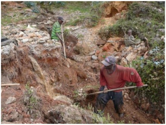 ASM takes place in more remote, mostly poorer areas, and therefore those sites may experience uncontrollable illegal mining and smuggling of minerals from other areas or countries. In poorer rural areas, the only source of income apart from agriculture is often the extraction of minerals. Mining in these areas is more profitable than agricultural activities, which has in particular a self-sufficiency function. Due to the large population size, high population density of the Great Lakes Region, and a greater dependence of the population on quality soil and water, environmental aspects play an important role in the life of the local population. A study conducted in Rwanda by Cook et al. [] documents that in mineral-rich areas, mining is the dominant source of income for most workers and has become increasingly important in the last ten years. Most miners claim that mining offers an above-standard source of income. They can earn twice as much money by mining than in agriculture, thus these activities tend to develop, while natural conditions in the affected areas worsen.