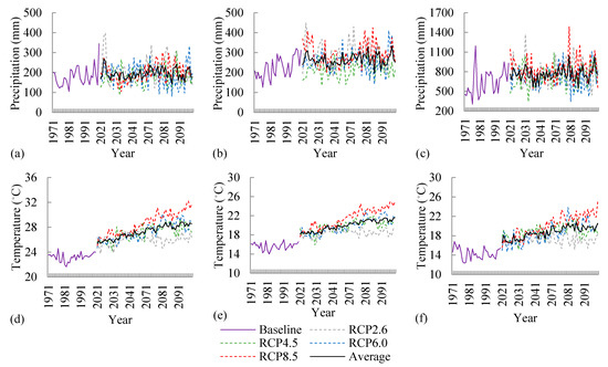 The simulated climate data (1971–2099, 0.5° × 0.5° resolution) of the HadGEM2-ES global climate model with four climate scenarios (RCP2.6, RCP4.5, RCP6.0, and RCP8.5) (GCM) were downloaded from the Inter-Sectoral Impact Model Intercomparison Project (ISI-MIP) (https://www.isimip.org/, accessed 17 January 2020). The daily climate data included maximum temperature, minimum temperature, and precipitation.