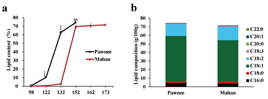 - Lu, S.; Sturtevant, D.; Aziz, M.; Jin, C.; Li, Q.; Chapman, K.D.; Guo, L. Spatial analysis of lipid metabolites and expressed genes reveals tissue-specific heterogeneity of lipid metabolism in high- and low-oil Brassica napus L. Seeds. Plant J. 2018, 94, 915–932. [Google Scholar] [CrossRef]