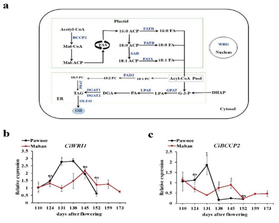 - Wu, X.L.; Liu, Z.H.; Hu, Z.H.; Huang, R.Z. BnWRI1 coordinates fatty acid biosynthesis and photosynthesis pathways during oil accumulation in rapeseed. J. Integr. Plant Biol. 2014, 56, 582–593. [Google Scholar] [CrossRef] [PubMed]