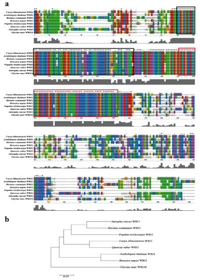 - Maeo, K.; Tokuda, T.; Ayame, A.; Mitsui, N.; Kawai, T.; Tsukagoshi, H.; Ishiguro, S.; Nakamura, K. An AP2-type transcription factor, WRINKLED1, of Arabidopsis thaliana binds to the AW-box sequence conserved among proximal upstream regions of genes involved in fatty acid synthesis. Plant J. 2009, 60, 476–487. [Google Scholar] [CrossRef] [PubMed]
