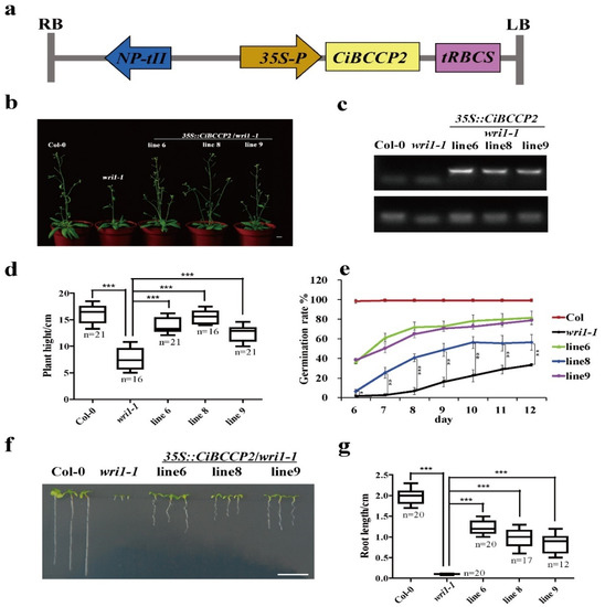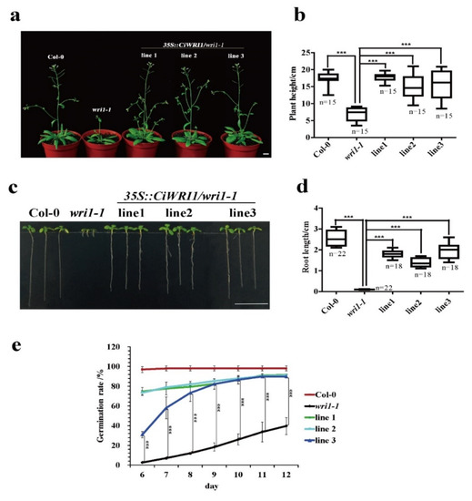 3.4. CiWRI1 is Functional Conserved with WRI1 in Arabidopsis