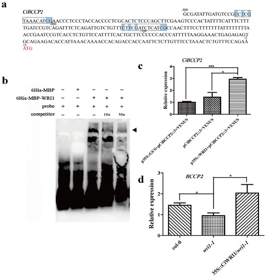 3.6. Regulation of CiBCCP2 Expression by CiWRI1